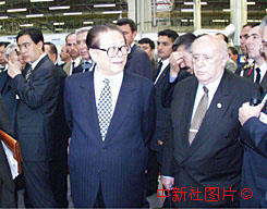 國家主席江澤民20日在土耳其總統德米雷爾的陪同下,參觀伊斯坦布爾的一家高科技公司。中新社記者 彭偉祥 攝