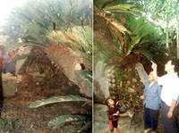 圖:江西一村落發現巨形鐵樹 2001年07月12日 09:41 ![]() 江西省吉水縣盤谷鎮谷村,近日發現一株形態奇特的巨形鐵樹,有關專家估測,這株長六米、徑寬近一米的鐵樹年歲在五百年以上。據說有客商要出八萬元錢收購此樹,而樹主胡桂秀認為,鐵樹是鎮村之寶,不可賣出。中新社圖 張長根 攝