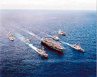 高技術戰爭的性質決定了現代戰爭肯定是多軍種一體化聯合作戰,所以這次兩個航母戰群與20架美國空軍戰機進行了聯手演練;當然,航母戰群的其它艦艇也進行了如何保護航母、如何進行水下突擊等科目的訓練。整個演習的核心是圍著“星座號”航母戰群空中、水面和水下立體化進行的。