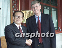 國家主席江澤民二十八日在北京會見來華參加“人類基因組測序第十次戰略會議”的科學家。中新社記者 滿會喬 攝