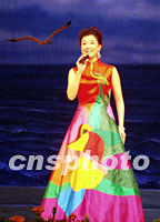 宋祖英十七晚在海口人大會堂舉行的海南島歡樂節晚會上放歌,給歡樂節壓軸添彩。中新社圖 王辛莉 攝