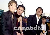 香港影視明星劉德華、梅艷芳、吳君如,十八日趕赴澳門為第四十八屆格蘭披治大賽車助興。中新社傳真 宗金柱 攝