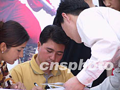 高空王子阿迪力平安著陸 下一沖擊目標是長城(圖) 2002年05月11日 17:18 ![]() 十二日,剛剛在高空創下新吉尼斯紀錄的“高空王子”阿迪力來到北京春季書市,為記錄他挑戰世界記錄的《驚心22天》一書首發簽名義賣。義賣收入和“阿迪力基金”中的一萬元將捐給因患癌癥急需社會救助的21歲北京姑娘趙晶。中新社記者 章永哲 攝