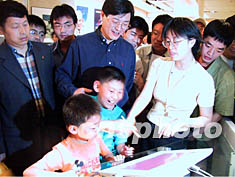 圖:北京科技周聯想構建未來E-home 2002年05月19日 18:19 ![]() 19日,聯想集團總裁楊元慶(中)在北京世紀壇科技活動周中與前來參觀的小朋友一同體驗未來的數字家庭E-home。中新社記者 杜洋 攝