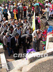 圖:海內外鄭氏宗親祭奠鄭成功陵墓 2002年05月27日 14:50 ![]() 來自世界鄭氏宗親總會、臺北縣鄭氏宗親會、香港鄭氏宗親會等的鄭氏后裔,鄭氏宗親及海內外來賓近五千人,二十六日來到福建南安水頭鎮鄭成功陵墓祭奠這位民族英雄。劉可耕 攝
