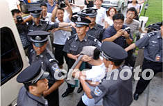 目擊:猥褻兒童案宣判 紅豆衣服捂頭走上囚車(chē)(圖) 2002年06月21日 10:05 ![]() 猥褻多名男童的青年歌星紅豆二十日在北京朝陽(yáng)法院被一審判處三年零六個(gè)月的徒刑。圖為紅豆在法庭宣判結(jié)束后,用衣服捂著頭走上囚車(chē)。作者:武仲林 核心提示:受人關(guān)注的北京金輪影視文化藝術(shù)有限公司簽約歌手紅豆(本名王立勇)涉嫌猥褻一案,終于有了結(jié)果。昨天,北京市朝陽(yáng)區(qū)人民法院在三樓大法庭進(jìn)行了公開(kāi)宣判,紅豆被依法判處有期徒刑三年六個(gè)月。 被告請(qǐng)來(lái)兩位律師 昨天14時(shí)30分,朝陽(yáng)法院對(duì)紅豆猥褻一案進(jìn)行宣判,法院根據(jù)《中華人民共和國(guó)刑法》第237條第一、三款,認(rèn)定歌手紅豆猥褻7名男童證據(jù)確鑿,罪名成立,判處其有期徒刑三年六個(gè)月。 法庭上,被告席上坐著兩位辯護(hù)律師,原告席上則坐著一名公訴人員,受害人家屬?zèng)]有到庭。對(duì)此宣判結(jié)果,記者問(wèn)紅豆的辯護(hù)律師是否要上訴,同是來(lái)自河北方圓律師事務(wù)所的李文生、張建棟律師都非常謹(jǐn)慎地說(shuō):“這得和紅豆本人商量后再說(shuō)。”對(duì)于這個(gè)結(jié)果是否在其意料之中,兩位律師都非常客氣地對(duì)記者表示“不好說(shuō)”,而后就匆匆地離開(kāi)了法庭。 衣服捂頭走上囚車(chē) 下午1時(shí)多,記者趕到朝陽(yáng)法院時(shí),已經(jīng)有幾名挎著相機(jī)、扛著攝像機(jī)的記者在門(mén)口等著。就在法庭要開(kāi)庭宣判時(shí),十幾名攝像記者都將鏡頭對(duì)準(zhǔn)了紅豆可能要經(jīng)過(guò)的通道,就在紅豆被四名法警押著走進(jìn)法庭的時(shí)候,三樓大法庭發(fā)生了一點(diǎn)兒騷動(dòng),十幾名攝像記者想沖出法警們的阻攔拍到紅豆走上被告席的瞬間鏡頭,但都被法警和其他工作人員擋住。 記者在旁聽(tīng)席上看到,身穿白色T恤、深色褲子的紅豆看起來(lái)氣色不錯(cuò),和其以前在公眾面前露相時(shí)相比并未顯出消瘦。紅豆走進(jìn)法庭后一直背對(duì)著旁聽(tīng)席。審判長(zhǎng)宣讀完判決書(shū)后,法警沒(méi)有讓紅豆從原來(lái)的通道走出去,而是由一名法警押著從法官的通道很快地消失了。 15時(shí)左右,幾名法警出來(lái)維持秩序,一輛囚車(chē)停在了法院大樓西門(mén)口,囚車(chē)后門(mén)已經(jīng)打開(kāi)。當(dāng)記者們把鏡頭都調(diào)好時(shí),首先出來(lái)的卻是昨天下午宣判的其他案犯,紅豆是倒數(shù)第二個(gè)走出西門(mén)的,身穿白色T恤的他用囚衣捂著自己的頭部,在法警們的嚴(yán)密監(jiān)護(hù)下快速地跟在其他犯人后邊上了囚車(chē)。 案情經(jīng)過(guò)回放 2000年4月至2001年6月,紅豆在其指導(dǎo)北京某學(xué)校學(xué)生的課程時(shí),利用職務(wù)之便,以玩游戲、請(qǐng)吃飯、釣魚(yú)為名,先后將7名男生誘至其家中或朝陽(yáng)區(qū)某賓館客房?jī)?nèi),多次對(duì)男童進(jìn)行猥褻,嚴(yán)重時(shí)甚至超出一般意義的猥褻,并攙雜了金錢(qián)交易。 2001年9月8日,校方領(lǐng)導(dǎo)向朝陽(yáng)分局報(bào)案,2001年12月17日公安機(jī)關(guān)將紅豆抓獲歸案,并于12月27日,由朝陽(yáng)區(qū)人民檢察院批準(zhǔn)逮捕。此事被媒體曝光后,引起社會(huì)輿論的一片嘩然。2002年1月,紅豆委托北京寶鼎律師事務(wù)所的田力律師為其辯護(hù)。 2002年4月潘強(qiáng)、于偉昕律師正式代理山西運(yùn)城受害男童,向北京朝陽(yáng)分局提出立案請(qǐng)求。今年的5月8日,紅豆涉嫌猥褻兒童一案在北京市朝陽(yáng)區(qū)人民法院正式立案,6月6日,朝陽(yáng)法院依法進(jìn)行了不公開(kāi)審理。 紅豆曾說(shuō)愿意服法 記者發(fā)現(xiàn),在昨天的法庭上,紅豆的兩位律師不再是以前媒體所說(shuō)的那位田力律師。下午6時(shí)多,記者撥通了田力律師的電話,他告訴記者,他是在開(kāi)庭前的兩三天被解除了和當(dāng)事人紅豆之間的代理關(guān)系,對(duì)于其中的緣由,田律師表示“原因比較復(fù)雜”,一言難盡。田力律師說(shuō),在和紅豆接觸時(shí),紅豆就曾表示過(guò)如果判刑,就“愿意服法”。 猥褻兒童罪不分性別 康德律師事務(wù)所的魏勝律師認(rèn)為,現(xiàn)在我國(guó)刑法中的猥褻犯罪是從以前的流氓罪中分離出來(lái)的,猥褻兒童罪還沒(méi)有具體區(qū)分性別。根據(jù)我國(guó)刑法第237條規(guī)定,以暴力、脅迫或者其他方法強(qiáng)制猥褻婦女或者侮辱婦女的,處五年以下有期徒刑或者拘役,聚眾或者在公共場(chǎng)所當(dāng)眾犯前款罪的,處五年以上有期徒刑,猥褻兒童的,依照前兩款的規(guī)定從重處罰。 “安康大使”已換人 據(jù)了解,去年6月份,中國(guó)兒童青年基金會(huì)相中了歌手紅豆,聘其作為“安康計(jì)劃”形象大使。而紅豆涉嫌猥褻兒童的消息被媒體披露后,基金會(huì)正式將紅豆的“安康”形象大使取消。2002年6月10日,中國(guó)兒童青年基金會(huì)在眾多專(zhuān)家和媒體的嚴(yán)格審核之下,安康新大使正式出爐,亞洲歌后那英和“新世紀(jì)中國(guó)第一男模”李學(xué)慶成為新一任“安康形象大使”。?(郭志霞) 聲音 紅豆給那些孩子造成的也許是一生的陰影,可法律只能判處紅豆三年多的徒刑,也許三年半過(guò)后,紅豆又像他的某些前輩一樣重