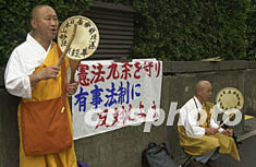 圖:日本僧侶國會前反對有事法制 2002年07月02日 20:10 ![]() 日本山妙法寺的僧侶在國會議員會館前頌經,反對正在國會審議的有事法制,要求日本政府嚴守“放棄戰爭”的憲法第九條。作者:陶光雄