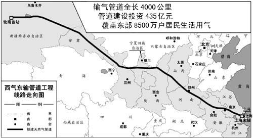 西氣東輸工程全線開工 江澤民總書記致信祝賀(圖) 2002年07月04日 19:43 ![]() 西氣東輸管道工程線路走向圖(人民日報/圖 張雅文/繪) 中新網北京7月4日消息:中共中央總書記、國家主席江澤民7月3日致信祝賀西氣東輸工程全線開工。全文如下: 西氣東輸沿線各省區市黨委和政府,參與工程建設的部門和單位: 西氣東輸是一項舉世矚目的宏大工程,是實施西部大開發戰略的重要舉措。我代表黨中央、國務院,對工程的全面開工建設表示熱烈的祝賀!向廣大工程建設者表示親切的慰問! 這項工程的建設,對加快西部地區的發展步伐,對提高新疆及沿線各族人民的生活水平,對推進沿線特別是長江三角洲地區能源結構和產業結構的調整,具有重大的意義。希望沿線各省區市黨委和政府、參與工程建設的全體員工,大力弘揚艱苦奮斗的精神,精心組織,加強協作,群策群力,科學施工,認真借鑒國外先進技術和管理經驗,把西氣東輸工程建成一流工程,為社會主義現代化建設作出新的貢獻。 江澤民 二00二年七月三日(完) 西氣東輸管道工程正式開工將提升中國天然氣一半產量 中新社北京七月四日電(記者 尹丹丹)中國最長的管道工程和實施西部大開發戰略的標志性項目西氣東輸管道工程,今天于此間人民大會堂舉行了開工典禮。該管線的建成將使中國的天然氣產量增加百分之五十,使天然氣占全國一次能源結構的比重由百分之二點一提高到百分之三。 管道干線西起新疆塔里木的輪南油氣田,向東經甘肅、寧夏、陜西、山西、河南、安徽和江蘇等省、自治區,最終到達上海市郊區的白鶴鎮,全長四千多公里,直徑一千零一十六毫米。 據介紹,管道分為兩段鋪設:二OO四年春天,建成陜西靖邊至上海區段,并率先供氣;二OO五年夏天建成輪南至靖邊區段,實現全線貫通。 除長度最長外,該項目建成后還將創其他多項中國管道之最:途經行政區域最多,其干線途徑九省(市)、自治區,六十六縣(市);地形、地貌、地質條件最復雜多樣,管道將經過沙漠、戈壁、山區、丘陵、平原、盆地、黃干高原、江南水網、大江大河和大量農田等,集中國地貌之大成;管道輸氣量最大,年輸量一百二十億立方米;工程投資最高,上中下游一期總投資為一千五百多億元人民幣,其中管道工程投資為四百多億元;穿越大型河流最多,將穿越黃河三次,穿越長江、淮河各一次,另外還將穿(跨)其他大型河流十余次。 中國政府希望,通過西氣東輸工程把中國西部的資源和東部經濟發達地區的市場連接起來,以推動國民經濟發展,特別是在中西部發展中發揮重大作用。同時,東部地區更多地采用天然氣作為能源,既能緩解其能源緊缺局面,又將對改善中國燃料結構,保護環境,實現可持續發展具有深遠的意義。(完) 新聞背景:“一箭雙雕”的西氣東輸管道工程 中新社北京七月四日電(記者 尹丹丹)連接中國西部豐富天然氣資源和東部經濟發達地區巨大市場的西氣東輸管道工程,今天在此間宣布正式開工。 在中國人眼里,這一將耗資一千五百多億元人民幣的大型工程,將具有“一箭雙雕”的作用,既促進中西部地區經濟發展,又緩解東部能源緊缺。 中國的天然氣資源主要集中在西部地區,而消費市場則主要在東部地區。西部地區蘊藏的二十二點四萬億立方米天然氣資源,約占全國陸上天然氣資源總量的百分之五十九。塔里木、柴達木、陜甘寧和川渝盆地的四座國家級大氣田,到去年底累計探明天然氣地質儲量逾二點五萬億立方米,可形成一百八十億立方米的年產能力。 鑒于上述四大氣田的開發利用問題亟待解決,原中國石油天然氣總公司計劃鋪設樹枝形的輸氣管道,將四大盆地的富余天然氣,聯合輸往東海之濱,以減輕西部探區氣田難開、資金沉淀的巨大壓力,緩解東部地區能源緊缺局面。 中國經濟界人士指出,鋪設這條長距離(管道干線全長四千多公里)、大口徑(直徑逾一千毫米)的輸氣管道,既會加速改善東部地區的能源結構,保護環境,促進實現經濟可持續發展,也會有力拉動相關產業,激活沿途省區鋼鐵、水泥、土建安裝和機械電子等企業的發展潛能,從而形成一條新的經濟增長帶。 今年三月,西氣東輸前期工作正式啟動。根據有關部門最終確定的工程實施方案:第一期工程每年輸氣一百二十億立方米,建設投資一千五百億元人民幣。 經官方驗收確認,塔里木盆地累計探明的天然氣地質儲量已達五千二百六十七億立方米,氣田開發后可以建成一百五十億立方米的年產能力,可向長江三角洲穩定供氣二十年。承擔先期供氣任務的長慶油田公司,十多年間相繼發現靖邊、榆林、烏審旗和蘇里格等大型氣田,到去年底總計探明天然氣地質儲量七千五百多億立方米,成為西氣東輸管道工程的又一主力氣源。 塔里木油田公司和長慶油田公司分別編制了氣田開發具體方案,在向長江三角洲輸氣之前完成一批氣田的開發建設,合并建成一百四十億立方米的年產能力。 據預測,上海市、江蘇省和浙江省的用氣量二OO五年為八十三億立方米,二O一O年為一百四十五億立方米。比較落實的用氣項目,主要有燃氣發電、化學工業、其它工業和城市居民生活燃料等。(完) 潛龍“氣”貫神州八千里——西氣東輸工程大展望 如果說,從東向西,蜿蜒于崇山峻嶺、高原大漠之上的萬里長城,宛如一條欲飛的蛟龍。那么,由西向東,穿大漠、過太行、越黃河、跨長江,蜿蜒