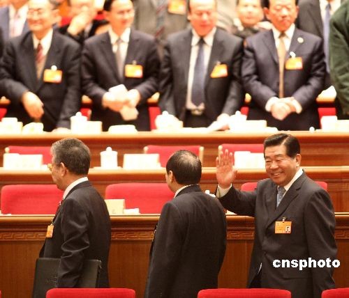 全國政協(xié)會(huì)議閉幕 賈慶林向委員揮手致意