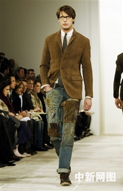 2006年2月6日,模特在紐約時裝周上展示Ralph Lauren男款秋裝。這是30年里,Lauren在紐約的第一次男裝秀。