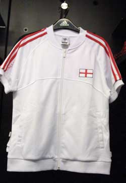 英格蘭隊的帥哥們很受女球迷的歡迎,所以多數品牌與英格蘭隊有關的產品都是女式的。一件白色短袖上衣,搭配牛仔長褲、短褲甚至是裙子都很容易出彩,怕曬的女孩可以再挑一個太陽帽。