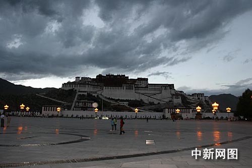 青藏鐵路“七·一”通車在即,火車將緣“天路”開上世界屋脊,圣城拉薩一派新裝迎接歷史車輪。圖為夏日傍晚話燈初上的布達拉宮廣場。 中新社記者柳俊武攝