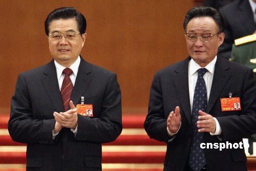 圖:胡錦濤、吳邦國出席全國人大第三次全體會議