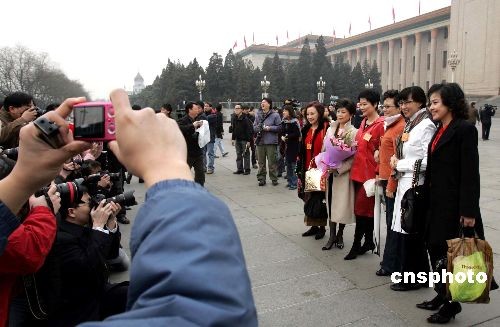 三月八日,“三八”國(guó)際婦女節(jié),全國(guó)政協(xié)十一屆一次會(huì)議第二次全體會(huì)議在北京人民大會(huì)堂舉行,全國(guó)政協(xié)女委員手持鮮花亮麗出現(xiàn)在北京天安門廣場(chǎng),立即成為媒體鏡頭的聚焦點(diǎn)。中新社發(fā) 潘索菲 攝