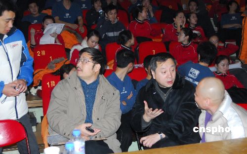2008年中國(guó)農(nóng)歷春節(jié)將近,中央電視臺(tái)各類春節(jié)檔期的晚會(huì)節(jié)目進(jìn)入了緊張的節(jié)目審查和彩排階段。文藝中心主任朱彤(前排右二)和春晚總導(dǎo)演陳臨春(前排左二)在彩排現(xiàn)場(chǎng)悉心指導(dǎo)工作。中新社發(fā) 楊影懿 攝