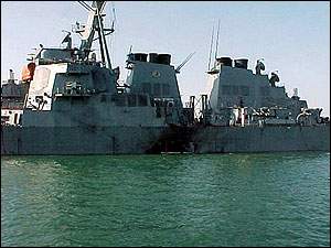 圖文:也門恐怖組織承認(rèn)襲擊美軍艦 2000年10月13日 11:16 ![]() 美國軍艦科爾號在也門遭受炸彈襲擊,美國總統(tǒng)克林頓表示,事件可能涉及恐怖襲擊。 ![]() 科爾號遇襲后,船身被炸穿一個大洞。 中新網(wǎng)北京10月13日消息:美國參議院武裝力量委員會主席沃納表示,也門一個恐怖組織承認(rèn)對美國驅(qū)逐艦遭受襲擊事件負(fù)責(zé)。國防部目前正評估其真實性。 據(jù)外電報道,該組織過去涉及多起恐怖襲擊,而這些襲擊與懷疑曾發(fā)動多起反美襲擊的阿拉伯富商拉登有關(guān)。 美國海軍驅(qū)逐艦昨天在也門港口遭受自殺式炸彈襲擊,死傷人數(shù)已增加至6名水兵死亡,11人失蹤,36人受傷。美國總統(tǒng)克林頓表示,這可能是一次恐怖襲擊。 克林頓表示︰“從目前情況看來,這似乎是恐怖襲擊行為,果真如此,這也是卑劣及懦夫的行為。假如他們的意圖是阻撓我們推動中東和平及安全的任務(wù),他們注定會失敗。” 克林頓已下令中東地區(qū)的美軍及陸軍加強戒備。他呼吁全球的美國人注意人身安全。國務(wù)院同時也向全球美國人發(fā)出警告,指出全球各地可能發(fā)生反美示威及恐怖活動,告誡美國民眾推遲到也門、以色列約旦河西岸地區(qū)的行程。 相關(guān)報道:美國官員稱,其驅(qū)逐艦受襲可能與拉登有關(guān) 相關(guān)報道:克林頓強烈譴責(zé)襲擊美軍驅(qū)逐艦行為 相關(guān)報道:美國驅(qū)逐艦遭自殺式襲擊4死30多傷 |