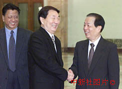 中國(guó)國(guó)務(wù)院總理朱镕基12日離開(kāi)北京,前往日本、韓國(guó)訪問(wèn),并出席在漢城舉行的第三屆亞歐會(huì)議。國(guó)務(wù)院副總理錢其琛等在北京人民大會(huì)堂送行。中新社記者 毛建軍 攝