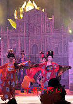 圖文:慶澳門回歸一周年文藝晚會3 2000年12月12日 09:35 ![]() 大三巴牌坊為背景的古代服飾表演.為慶祝澳門回歸一周年,中央電視臺心連心藝術團十一日晚在澳門蓮花廣場舉辦“流光溢彩濠江情”文藝晚會,圖為以大三巴牌坊為背景的古代服飾表演。中新社傳真 宗金柱 攝
