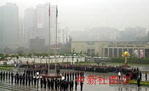 中新社澳門十二月二十日電(記者趙健) 今晨,澳門的天空飄著蒙蒙細雨,澳門的民眾卻絲毫不減慶祝回歸周年的熱情,天剛蒙蒙亮,就扶老攜幼,紛紛趕往金蓮花廣場,觀看慶祝澳門特別行政區成立一周年升旗儀式。 今天的金蓮花廣場充滿莊重神圣的氣氛,中央政府贈送給澳門特別行政區的雕塑“盛世蓮花”顯得金碧輝煌。這尊澳門回歸時中央政府贈送給澳門特區政府的賀禮,由花莖、花瓣、花蕊組成,象徵著澳門永遠繁榮昌盛。今年國慶前夕,為了在這里舉行國慶升旗儀式、澳門特區政府將安放“盛世蓮花”的場地開辟為金蓮花廣場,成為澳門最重要的升旗儀式之地。廣場四周黃色和紅色的菊花爭奇斗艷,身著制服的澳門儀仗隊、特警和澳門警察局銀樂隊一早就整齊地列隊等候在這里,等候著升旗的莊嚴時刻。 全國政協副主席馬萬祺、澳門特別行政區行政長官何厚鏵及夫人、中央人民政府駐澳門特別行政區聯絡辦公室主任王啟人、外交部駐澳門特別行政區特派員原燾、中國人民解放軍駐澳門部隊司令員劉粵軍和政委賀賢書、澳門特別行政區主要官員、澳門的全國人大代表和全國政協委員以及澳門各界知名人士、社團代表三百多人,也相繼來到這里,參加升旗儀式。 上午八時整,在雄壯的國歌聲中,鮮艷的五星紅旗和綠色的澳門特區區旗在金蓮花廣場冉冉升起,為澳門迎來了嶄新的一天。 帶著兩歲的女兒和五歲的兒子前來觀看升旗儀式的胡先生夫婦向記者表示,澳門歷來就是中國的領土,應該讓孩子自小就增加對國家和澳門的認識。看著國旗和區旗在澳門的土地上升起,心中感想很多,特別覺得驕傲和自豪。胡先生夫婦的話代表了眾多澳門民眾的心聲,當升旗儀式結束后,觀禮的民眾仍不舍離去,不少人在飄揚的五星紅旗和金色的蓮花前攝影,希望永遠銘記住這難忘的時刻。 |