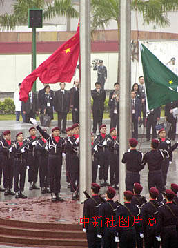 澳門特別行政區政府20日在金蓮花廣場舉行隆重的升旗儀式,慶祝澳門特區回歸祖國一周年。中新社傳真洪少葵攝