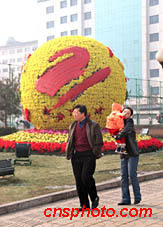 雖然北京的天氣還處于春寒之中,但已到處都是新布置的紅花綠草,顯得十分漂亮。北京正以嶄新的姿態迎接即將到來的奧委會考察團。中新社圖 郭高中 攝