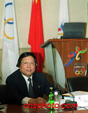 北京奧申委主席、北京市市長劉淇二十一日在北京舉行的迎接國際奧委會評估團會議上致詞。中新社記者 李剛 攝