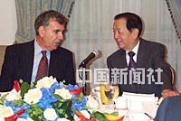 圖文:錢其琛與紐約主流媒體負責人共進早餐 2001年3月20日 23:02 ![]() 錢其琛與時代華納首席執行官萊文親切交談。作者:胡啟華 中新網紐約3月20日消息(記者 陳建)正在美國進行訪問的國務院副總理錢其琛,今天早晨在紐約與當地主流媒體負責人共進早餐。圖為錢副總理正與美國在線—時代華納首席執行官萊文親切交談。 |