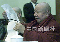 中國(guó)佛教協(xié)會(huì)副會(huì)長(zhǎng)、青海塔爾寺活佛卻西日前在北京出席宗教界反對(duì)“法輪功”邪教的座談會(huì),指出必須徹底揭露其丑惡面目。中新社記者 滿會(huì)喬 攝