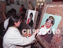 位于拉薩市郊的西藏大學藝術系藏族學生,以本民族模特為對象進行油畫創作。中新社記者 鄒憲 攝