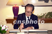 江澤民在留言簿上簽名