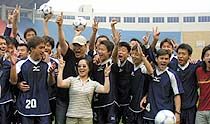 ![]() 歌手高崎6月6日下午參加鳳凰衛(wèi)視申奧車隊的“明星隊”,準備與陜西國力足球隊一比高低。魏孝明 攝