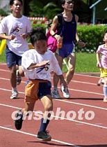 香港奧委會6月17日舉辦聲援北京申辦2008年奧運會長跑活動,數千名香港市民在高溫烈日下闔家出動為北京加油。中新社記者 任晨鳴 攝