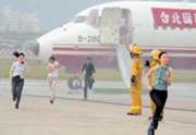 圖文:臺北機(jī)場防爆演習(xí) 三百人參加 2001年07月11日 10:20 ![]() 中新網(wǎng)臺北7月11日消息:臺北松山機(jī)場昨日舉行炸彈及毒氣爆炸應(yīng)變演習(xí),包括消防人員﹑軍人﹑特種部隊(duì)及警員在內(nèi)約三百多人參加。圖為機(jī)組人員模擬發(fā)生毒氣外泄事故,緊急放下充氣逃生滑梯,從機(jī)艙中跑到停機(jī)坪上疏散的情景。 |
