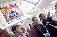 圖:張藝謀參加北京申奧代表團陳述排練 2001年07月11日 19:43 ![]() 中國著名導(dǎo)演張藝謀(中)和北京奧申委官員蔣效愚(右)11日一同步入莫斯科世貿(mào)酒店會場,參加北京申奧代表團的陳述排練。中新社記者 王瑤 攝
