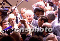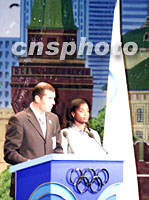 組圖:巴黎代表團進行申奧陳述 2001年07月13日 19:30 ![]() 7月13日,國際奧委會112次會議在莫斯科世界貿(mào)易中心舉行會議,表決2008年奧運會舉辦城市。圖為巴黎代表團齊達內(nèi)第一個陳述。中新社記者 王瑤 攝 ![]() 圖為巴黎代表團陳述后退場時,法國總理若斯潘接受記者采訪。中新社記者 王瑤 攝