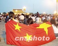 圖:等待天安門廣場的升旗儀式 2001年07月14日 11:27 ![]() 七月十三日晚的北京沉浸在興奮和歡樂的海洋中,天安門廣場更是紅旗招展,歡呼聲不斷。十四日清晨,歡慶申奧成功的人群安靜下來,靜靜地等待著中華人民共和國國旗在天安門廣場升起。中新社圖 武仲林 攝