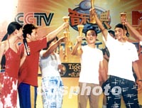 組圖:2001CCTV-MTV歌手匯聚京城歡慶申奧成功 2001年07月15日 18:54 ![]() 在北京申奧成功之際,2001CCTV-MTV音樂(lè)盛典,十五日在北京舉辦歡慶申奧成功,評(píng)選歌手現(xiàn)場(chǎng)投票活動(dòng)。圖為年輕歌手身穿前衛(wèi)時(shí)裝載歌載舞盡興表演。中新社記者 錢興強(qiáng) 攝 ![]() 為歡慶北京2008年申奧成功,CCTV-MTV音樂(lè)盛典十五日在北京舉行盛大歡慶活動(dòng)。圖為眾歌手和歌迷舉杯共慶北京申奧成功。中新社記者 錢興強(qiáng) 攝