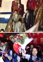 組圖:李嵐清率北京奧運會申辦代表團凱旋