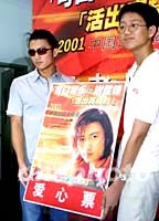新天王謝霆鋒十九日在上海向上海慈善基金會慈善助學(xué)的受助學(xué)生代表贈送本月二十八日在此間舉行的“可口可樂謝霆鋒活出真精彩演唱會”的門票。中新社記者 潘索菲 攝