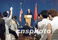 圖文:鮑威爾召開記者招待會介紹此次訪華情況 2001年07月28日 20:06 ![]() 正在北京訪問的美國國務卿鮑威爾二十八日傍晚在他下榻的北京國際俱樂部飯店回答記者提問。中新社記者 毛建軍 攝 ![]() 二十八日傍晚在北京舉行的美國國務卿鮑威爾訪華記者招待會吸引了眾多中外媒體代表到場采訪。中新社記者 毛建軍 攝