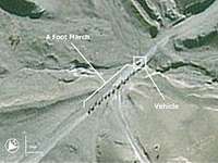 圖文:美國(guó)衛(wèi)星照片公開拉登在阿富汗訓(xùn)練營(yíng)地 2001年09月27日 16:54 衛(wèi)星照片示意地圖 營(yíng)地內(nèi)的秘密隧道入口 所指處懷疑為營(yíng)地內(nèi)直升機(jī)停機(jī)坪 塔利班控制區(qū)的訓(xùn)練營(yíng)地 訓(xùn)練營(yíng)地內(nèi)的隊(duì)員在行軍 中新網(wǎng)香港9月27日消息:美國(guó)非政府組織一家軍事網(wǎng)站,公開間諜衛(wèi)星所拍攝到的多張照片,顯示了本·拉登在阿富汗的訓(xùn)練營(yíng)地。 這些營(yíng)地就在阿富汗東部城市賈拉拉巴德附近的達(dá)倫特地區(qū),照片清楚顯示恐怖分子的營(yíng)地及掩護(hù)體,甚至有直升機(jī)起落坪。 |