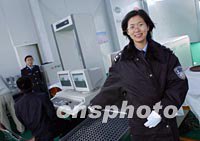 17日上海降溫刮起秋風,在國際新聞中心負責安檢的女警員換上風衣抵御瑟瑟秋風。中新社記者 王瑤 攝