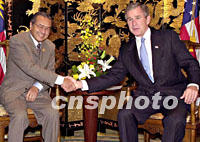 圖:美國(guó)總統(tǒng)會(huì)見(jiàn)馬來(lái)西亞總理 2001年10月20日 16:22 ![]() 10月20日,美國(guó)總統(tǒng)布什在上海會(huì)見(jiàn)馬來(lái)西亞總理馬哈蒂爾。中新社圖 |