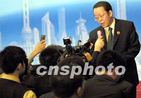 圖:王光亞介紹領導人首日會議 2001年10月20日 20:12 ![]() APEC會議籌委會秘書長王光亞二十日晚在上海國際新聞中心介紹領導人第一天會議情況時說,會議認真聽取了APEC工商咨詢理事會的建議,并將于二十一日下午簽署領導人宣言和反恐聲明。中新社圖 劉殊瑾 攝 |