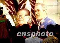 組圖:布什穿中式服裝亮相APEC峰會(huì) 2001年10月21日 11:31 ![]() 美國總統(tǒng)布什身穿藍(lán)色中式對(duì)襟服裝走出特制專用轎車,出席二十一日的上海APEC峰會(huì)。中外記者聚集在現(xiàn)場直播的電視屏幕前,進(jìn)行同步報(bào)道。中新社記者 賈國榮 攝 ![]() 十月二十一日清晨,中外記者聚集在上海國際新聞中心現(xiàn)場直播的電視屏幕前,關(guān)注中國國家主席江澤民身著紅色中式對(duì)襟服,迎接身穿藍(lán)色中式對(duì)襟服的美國總統(tǒng)布什,進(jìn)行出席上海APEC峰會(huì)。中新社記者 賈國榮 攝