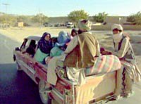 圖:阿富汗難民流離失所 2001年10月22日 14:35 ![]() 美軍空襲阿富汗以來,每天都有大量阿富汗難民涌往阿邊境難民營,目前在巴基斯坦的阿難民已達三百萬左右。圖為舉家逃難的阿富汗人。 |