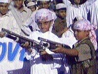 斯里蘭卡南部城市卡拉奇日前爆發大規模反美示威游行,圖為發誓要發動“圣戰”的穆斯林小男孩。