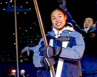 圖:鹽湖城冬奧會上的香港女選手蔡寶儀 2002年02月09日 17:15 ![]() 第十九屆冬季奧運會二月八日(當地時間)在美國鹽湖城開幕。在運動員入場式上,香港短道速滑女選手蔡寶儀打著香港特別行政區區旗,笑盈盈地率隊入場,受到全場五萬多觀眾的熱烈歡迎。