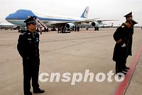 圖文:中國軍警在機場嚴密保衛美“空軍一號” 2002年02月22日 18:45 ![]() 中國軍警二十二日在北京機場嚴密保衛美國總統布什乘坐的空軍一號專機。中新社記者 賈國榮 攝