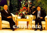 中國總理朱镕基七日在北京人民大會堂香港廳,會見剛剛連任香港特別行政區第二任行政長官的董建華先生。中新社記者 賈國榮 攝